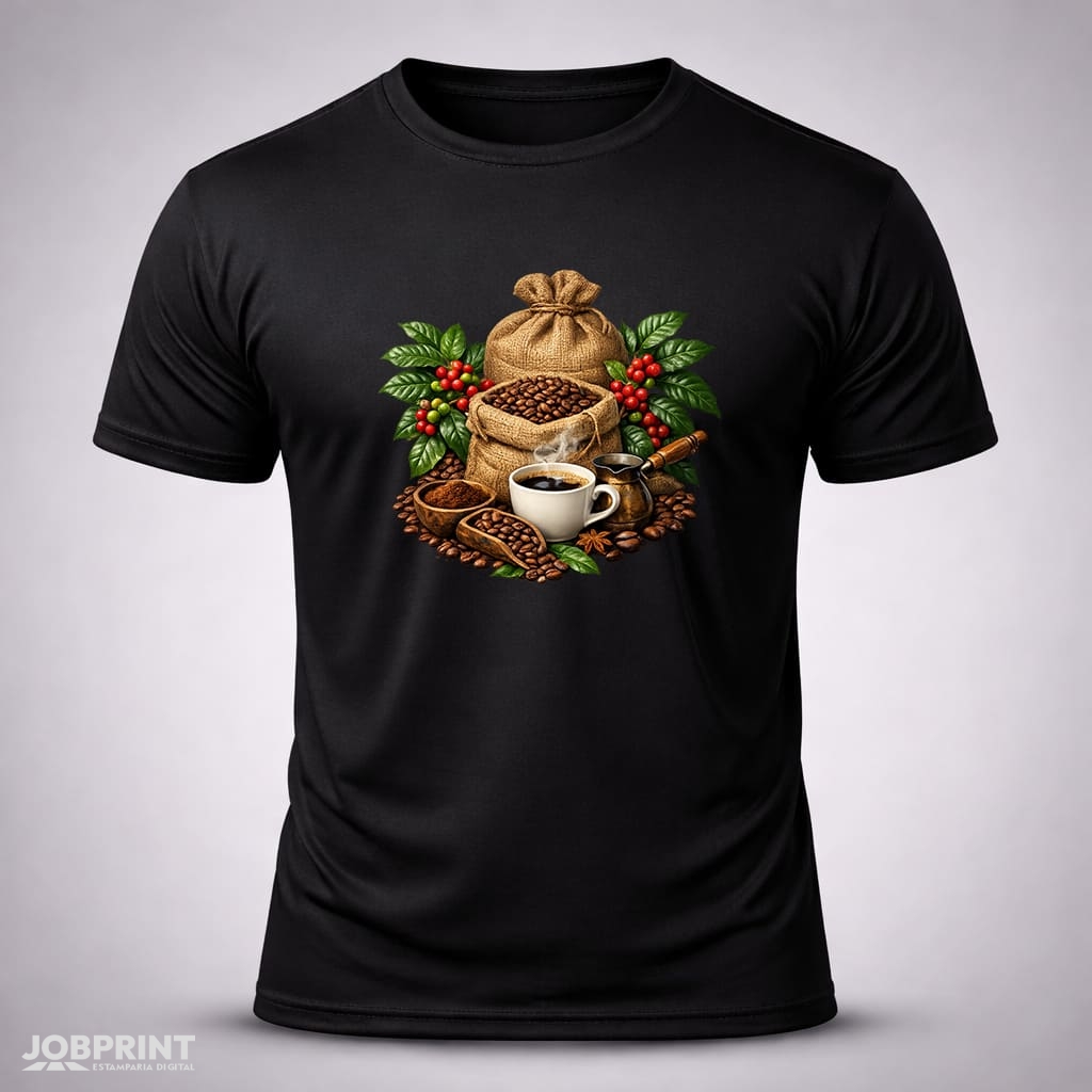 Camiseta Unissex Café do Brasil – Coleção Brasilidades, estampada em DTF Têxtil, 100% algodão fio 30.1 penteado, 160g/m². Conforto, estilo e identidade brasileira.