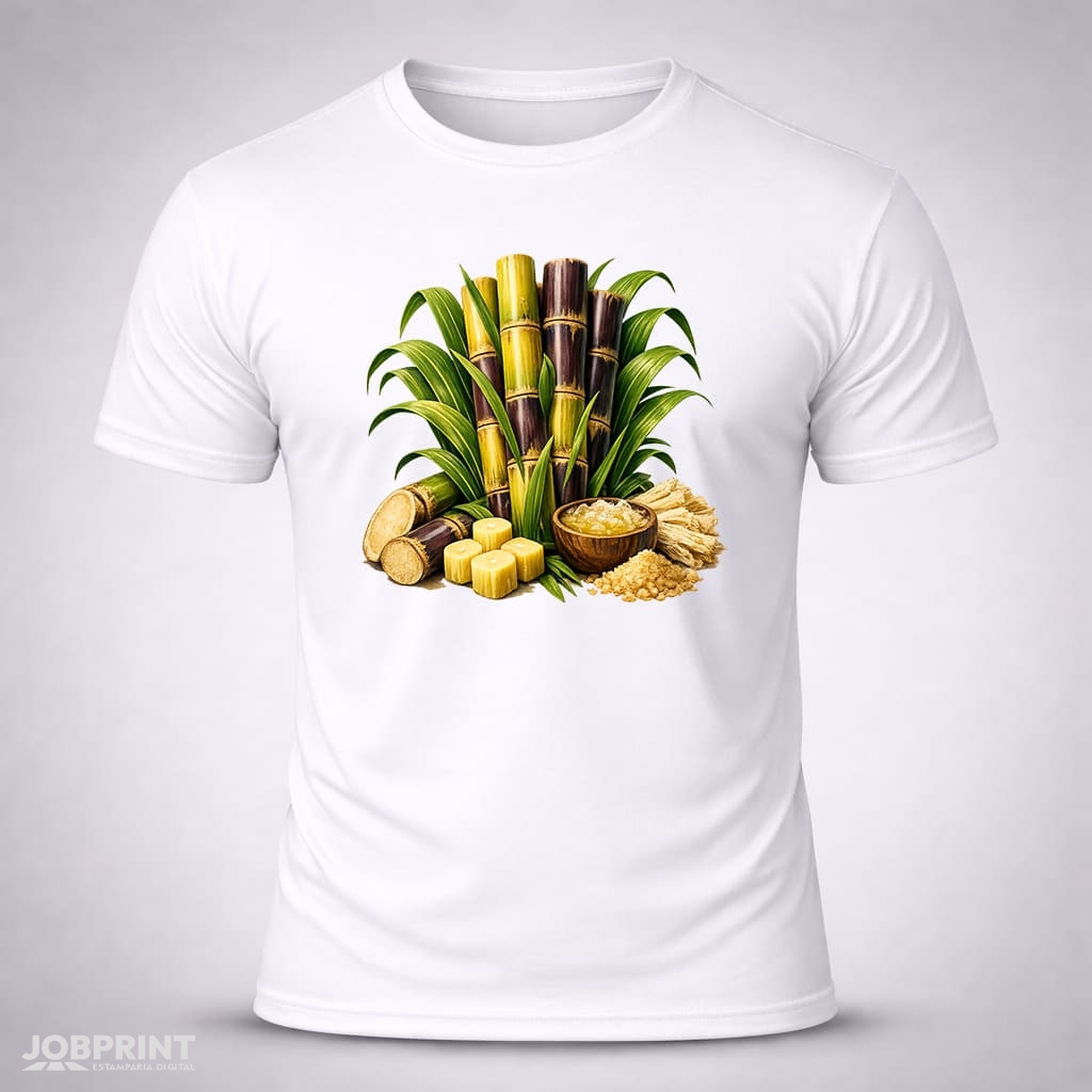 Camiseta Unissex Cana-de-Açúcar – Coleção Brasilidades, estampada em DTF Têxtil, 100% algodão fio 30.1 penteado, 160g/m². Conforto, estilo e identidade brasileira.