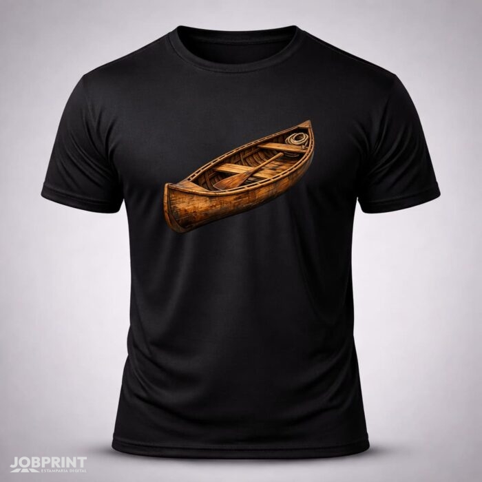 Camiseta Unissex Canoa de Madeira – Coleção Brasilidades, estampada em DTF Têxtil, 100% algodão fio 30.1 penteado, 160g/m². Conforto, estilo e identidade brasileira.