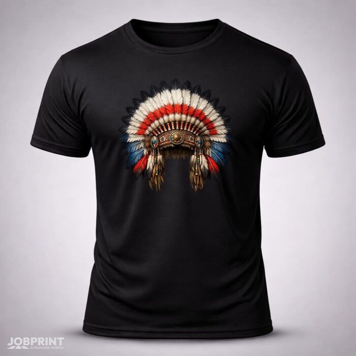 Camiseta Unissex Cocar – Coleção Brasilidades, estampada em DTF Têxtil, 100% algodão fio 30.1 penteado, 160g/m². Conforto, estilo e identidade brasileira.