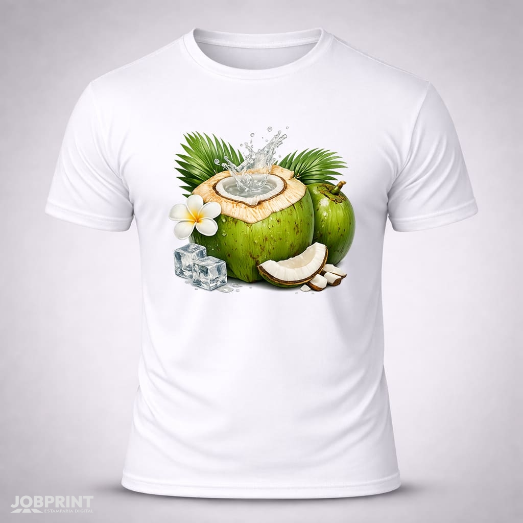 Camiseta Unissex Coco Verde – Coleção Brasilidades, estampada em DTF Têxtil, 100% algodão fio 30.1 penteado, 160g/m². Conforto, estilo e identidade brasileira.