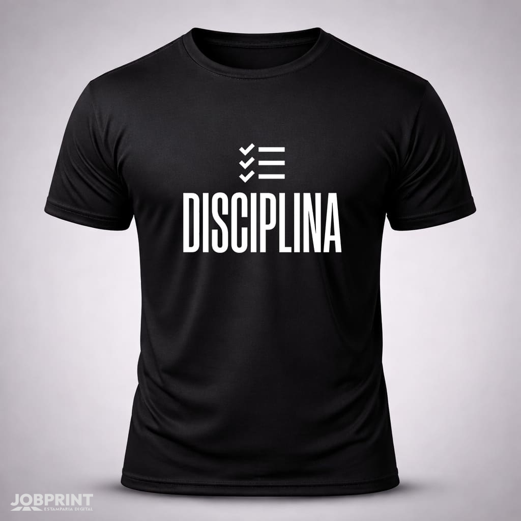 Camiseta Unissex “Disciplina” Coleção Frases, estampada em DTF Têxtil, 100% algodão fio 30.1 penteado, 160g/m². Conforto, estilo e personalidade.