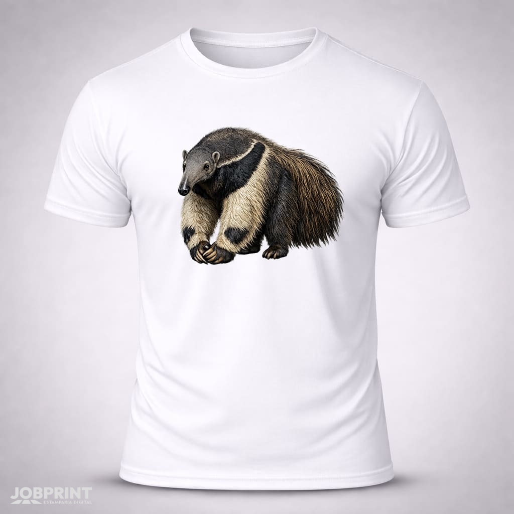Camiseta Unissex Tamanduá Bandeira – Coleção Brasilidades, estampada em DTF Têxtil, 100% algodão fio 30.1 penteado, 160g/m². Conforto, estilo e identidade brasileira.